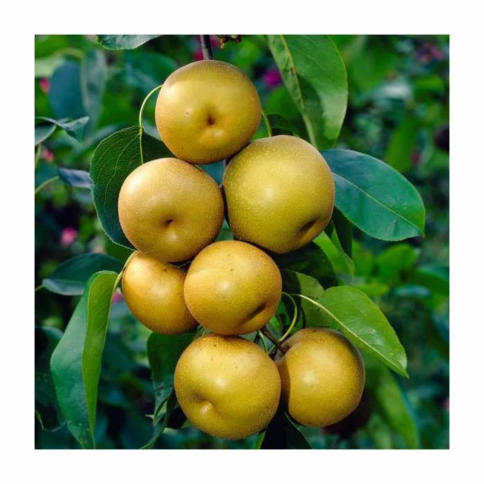 A real garden favourite, Pear pyrifolia ‘Nijisseiki’ (but most commonly known as the Asian Pear Tree), will make the perfect addition to your garden with its draping branches and generous crops. In mid-spring, abundant white blossoms will appear, which will transform your landscape with their cloud-like appearance! In late summer, you will enjoy a heavy crop of delicious fruits with a sweet flavour that features tones of butterscotch and brandy. Accompanying these is the fine display of autumn foliage – presented in a beautiful shade of fiery orange.